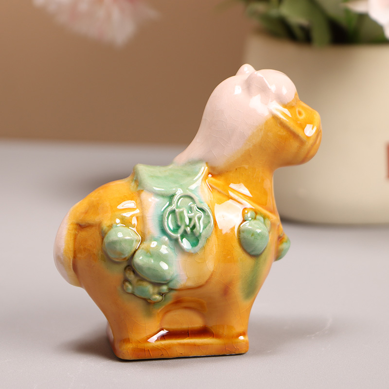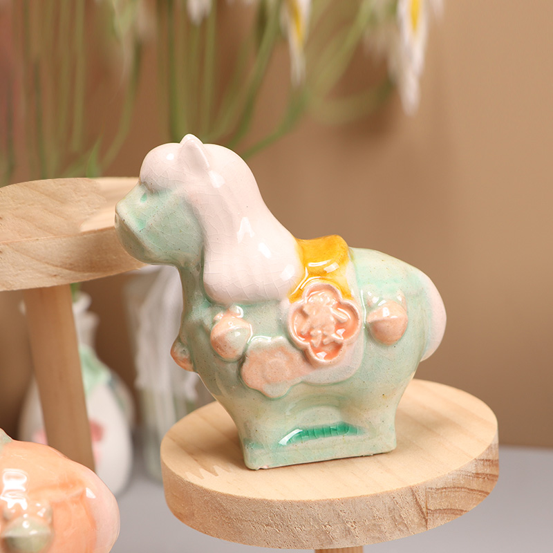 Painted Ceramic Lucky Chubby Horse: Desktop Ornament Gift