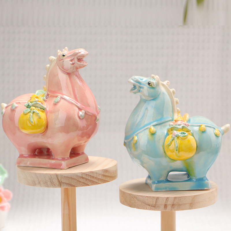 Cute Chubby Painted Pottery Pony Ceramic Craft • Mini Office Desk Decor & Birthday Gift
