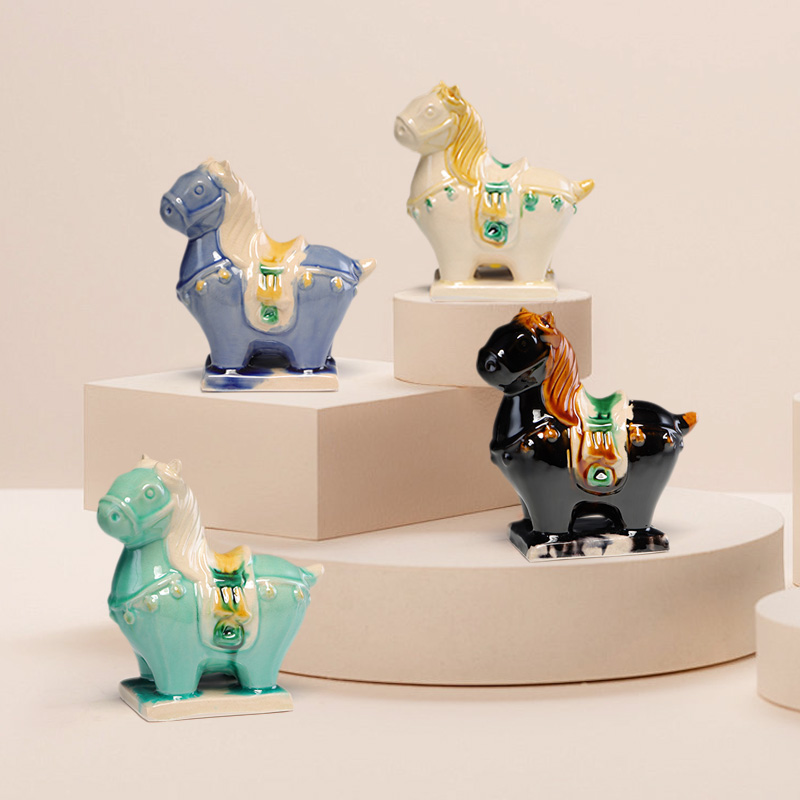 Lucky Chubby Painted Pottery Horse Ceramic Ornament • Desktop Decor & Gift